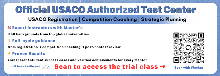 Sign up for a trial class and get the complete USACO resource package free: